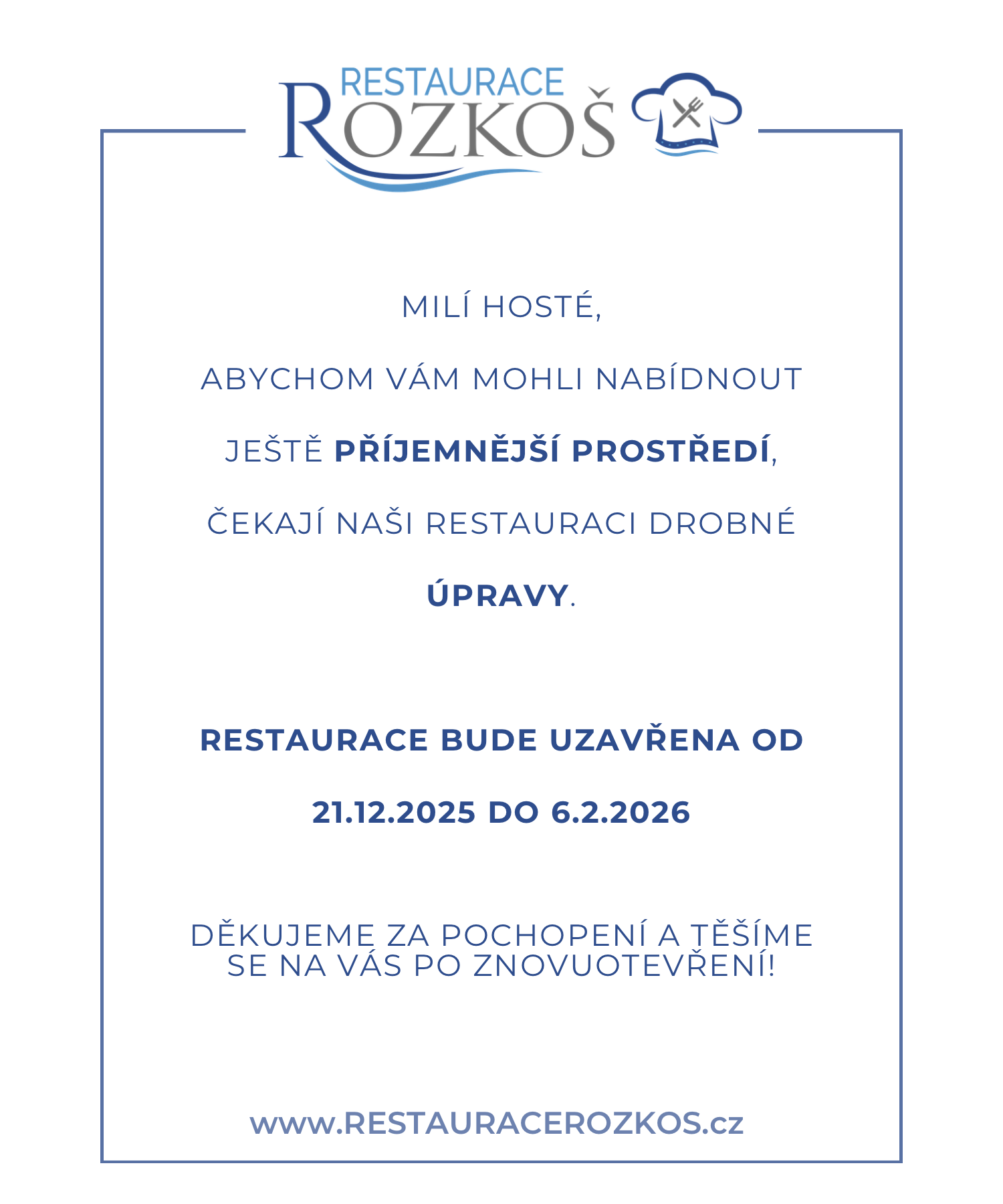 Naše restaurace nabízí 50 míst k příjemnému posezení. Dalších 100 hostů přivítáme na sále. Za příznivého počasí vás rádi obsloužíme na nově zrekonstruované venkovní terase v blízkosti lamího výběhu s krásným výhledem do přírody a na vodní nádrž Rozkoš.